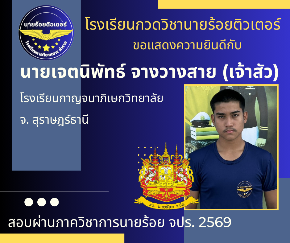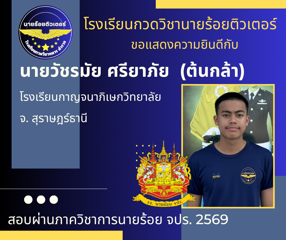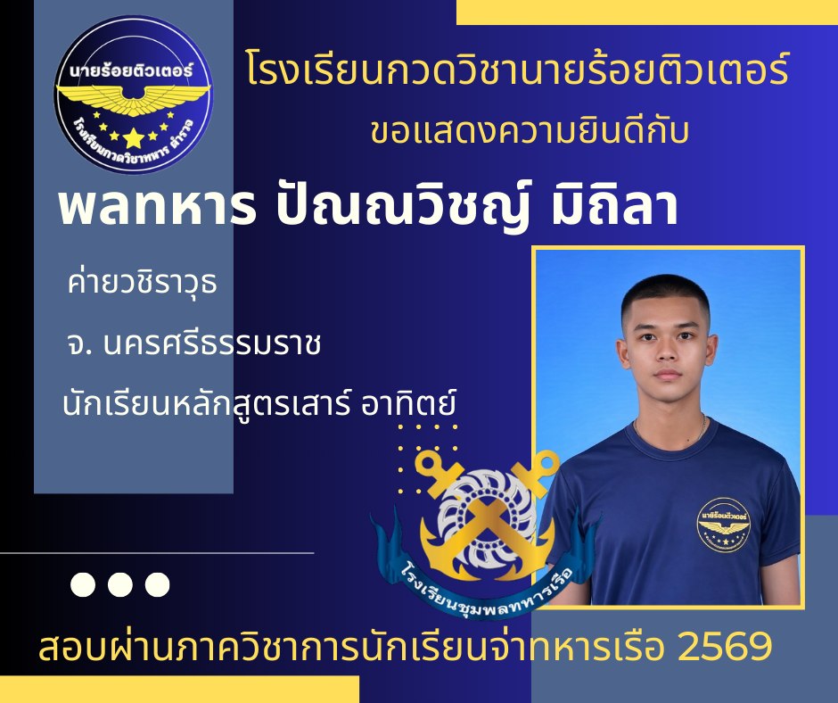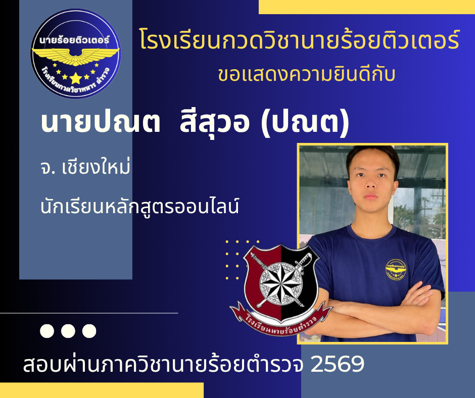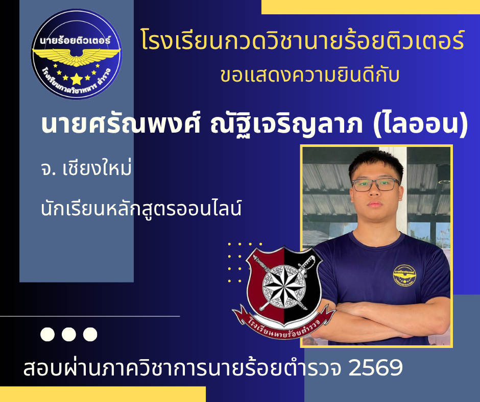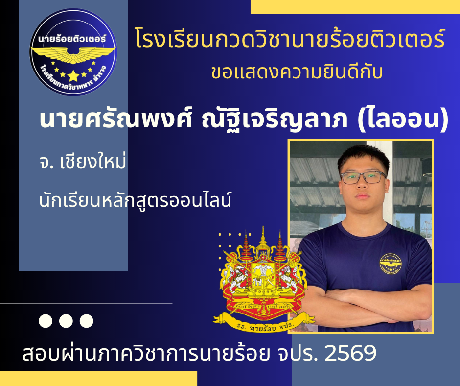 ผลงานที่ผ่านมา ปี 2569 ปี 2568 นักเรียนเตรียมทหาร (นายร้อย) นายสิบตำรวจ จ่าทหารเรือ 2017-04-08 qsecofr