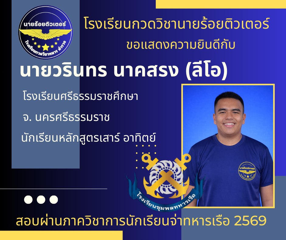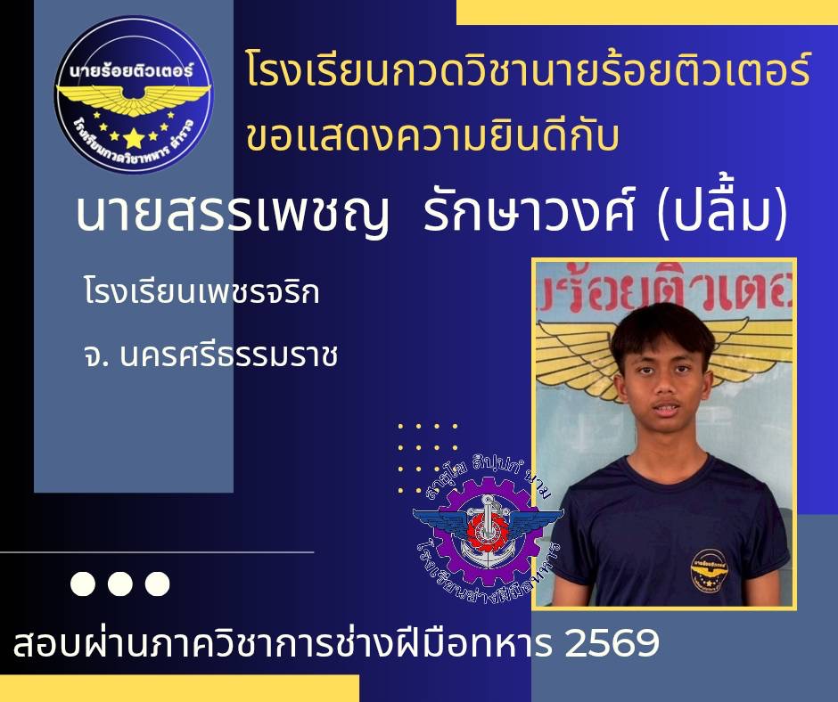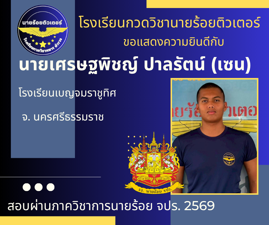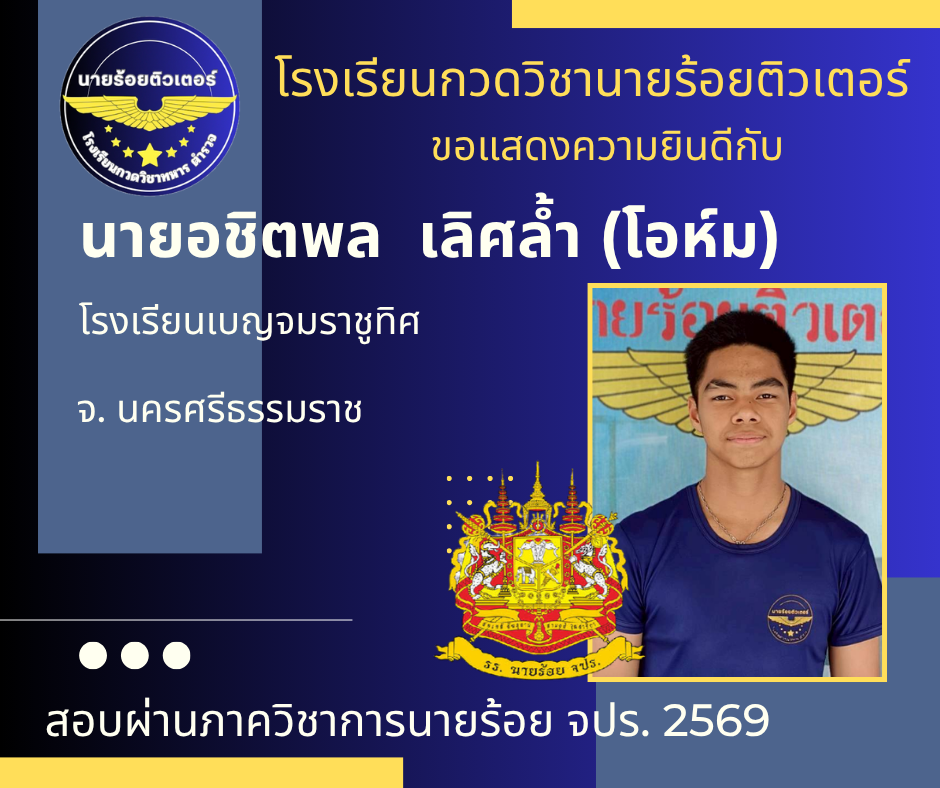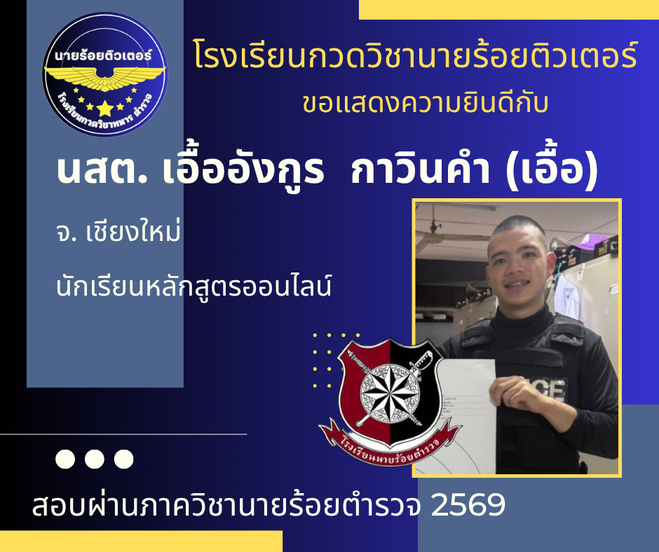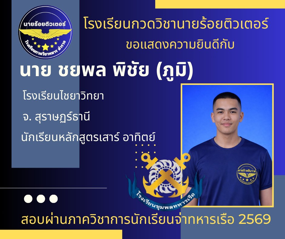ผลงานที่ผ่านมา ปี 2569 ปี 2568 นักเรียนเตรียมทหาร (นายร้อย) นายสิบตำรวจ จ่าทหารเรือ 2017-04-08 qsecofr