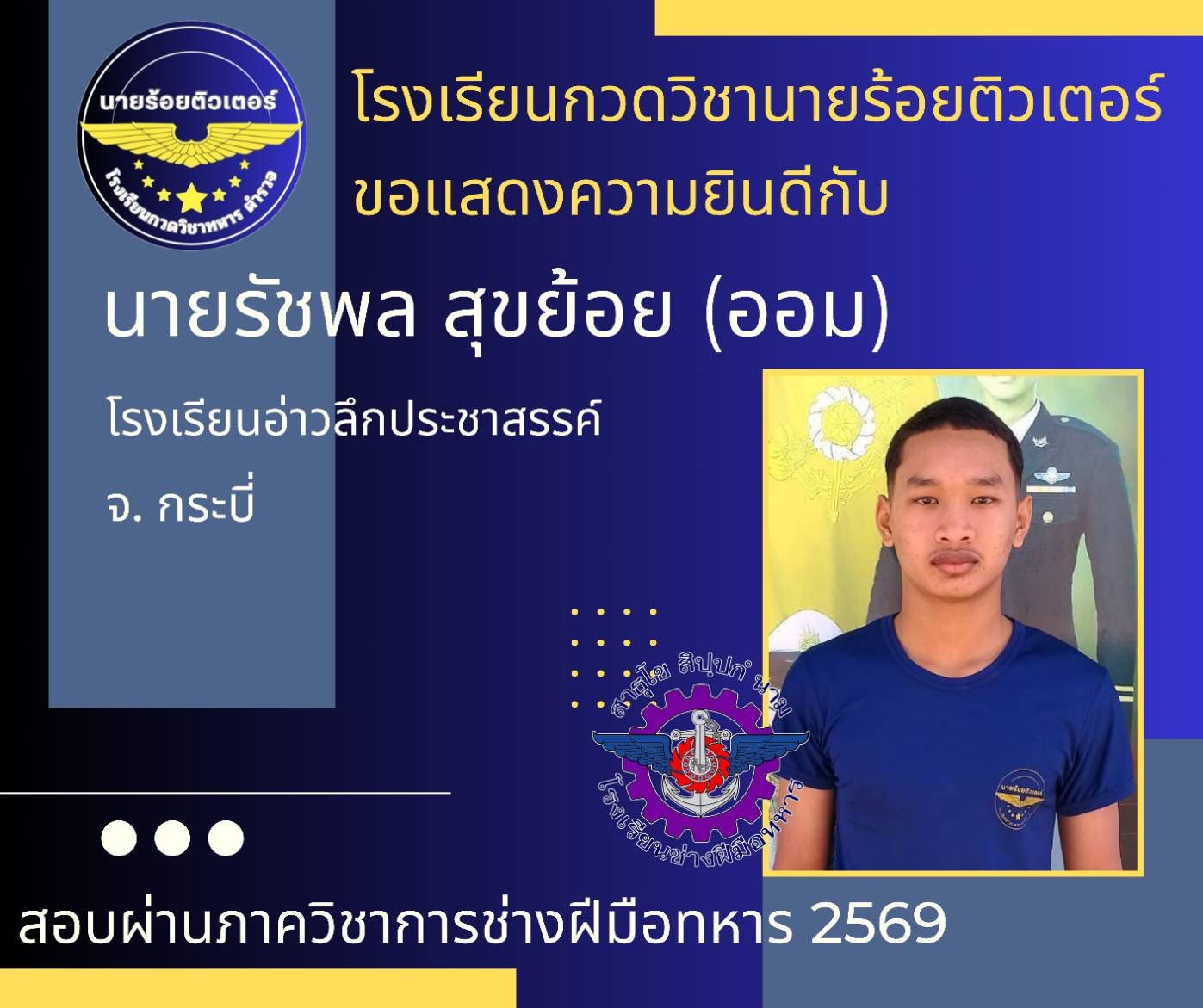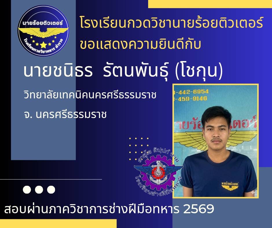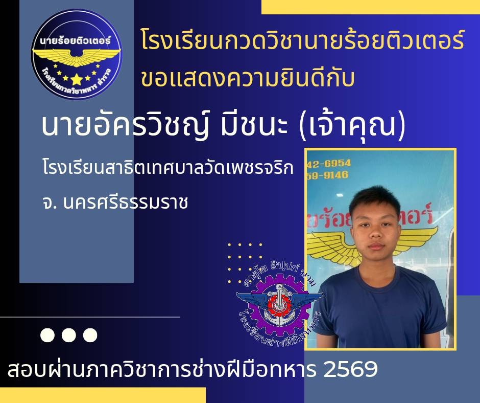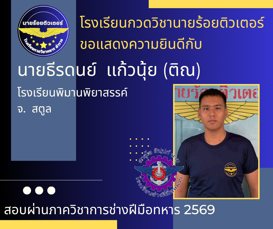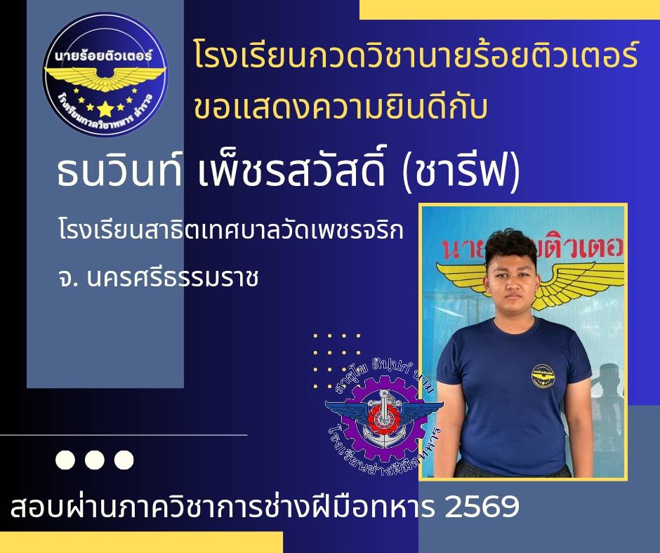 ผลงานที่ผ่านมา ปี 2569 ปี 2568 นักเรียนเตรียมทหาร (นายร้อย) นายสิบตำรวจ จ่าทหารเรือ 2017-04-08 qsecofr
